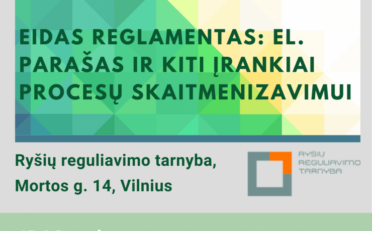 DĖMESIO! Renginys nukeliamas, data bus patikslinta! Lietuvos Respublikos Ryšių reguliavimo tarnyba drauge su INFOBALT organizuoja seminarą „eIDAS reglamentas: elektroninis parašas ir kiti įrankiai procesų skaitmenizavimui“, kurio tikslas – supažindinti verslo įmones su galimybėmis, kurias suteikia eIDAS reglamentuojamos patikimumo užtikrinimo paslaugos. Maloniai kviečiame verslo atstovus dalyvauti seminare